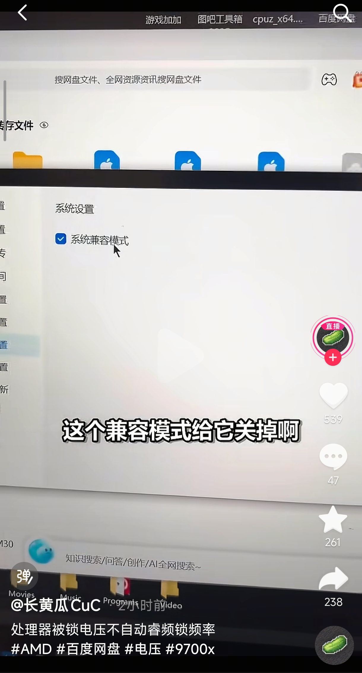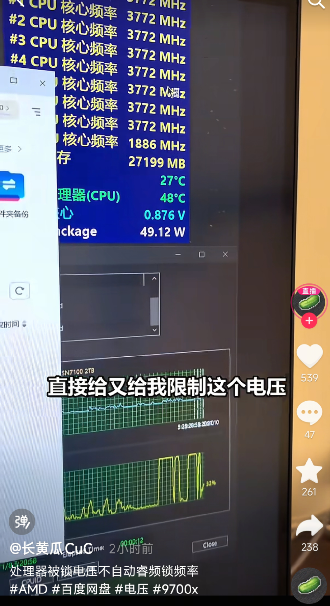 最近在网络上刷到相关视频,主要是讲在打开百度网盘后会导致CPU频率变低,限制电压等操作。