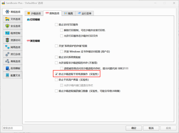 把百度网盘安装在沙箱中,通过设置,可以限制其对电源设置进行修改。