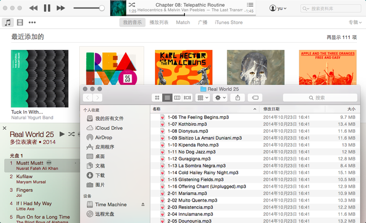 CD源的话,iTunes会在线链接Gracenote数据库,自动匹配专辑”表演者“、”曲目“、”年代“等信息(需要在偏好设置中勾选“自动从互联网取回CD音轨名称”);倒入的“专辑”就会出现在iTunes的“音乐”界面内。