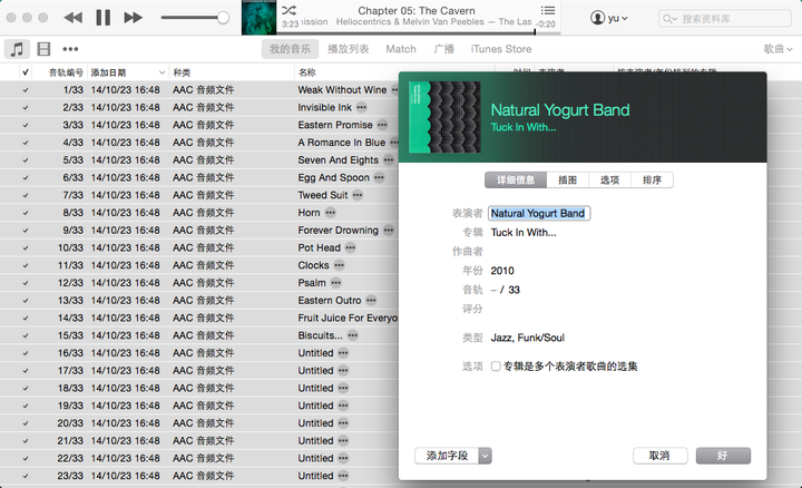 如果倒入的曲目信息不健全,就无法把导入的曲目集结在相同“专辑”内;就需要使用iTunes的曲目信息修改功能。