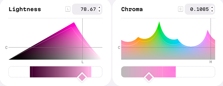 人眼也是一样,因此,OKLCH 用可感知亮度曲线替换了 HSL 中的 lightness
