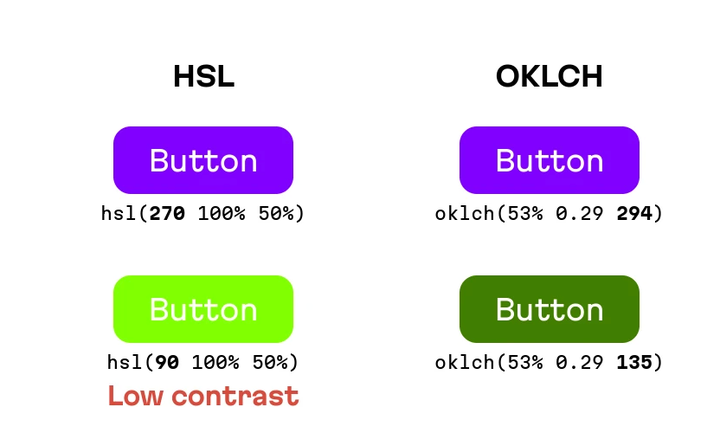 但要想好看,靠 HSL 不行,得靠 OKLCH 颜色函数