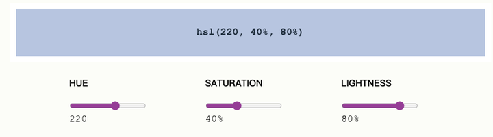 用 HSL 的话,有三个值:hue(色相),saturation(饱和度),lightness(明度)