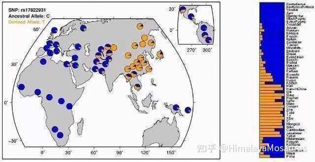 该位点大约在三万年前由始祖型370V突变产生衍生型370A,并在末次冰期的东亚兴盛开来,其在汉族中的频率大概有60~90%,而在非洲人群中则没有,在欧洲人中极少。