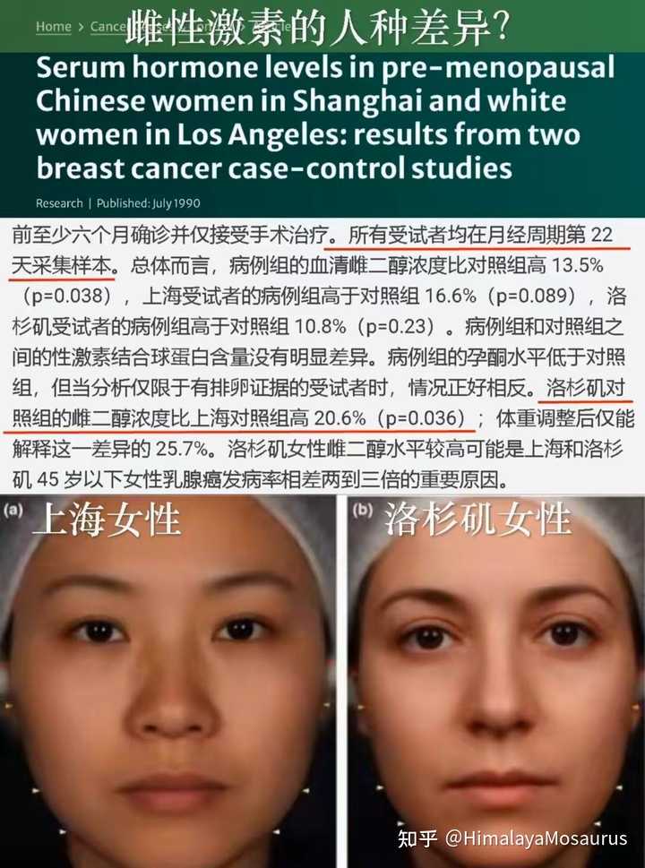 中国女生相比之下,雌性激素分泌是更低的,以上海女性为例,她们的雌二醇浓度比洛杉矶女性低了20%。[12]