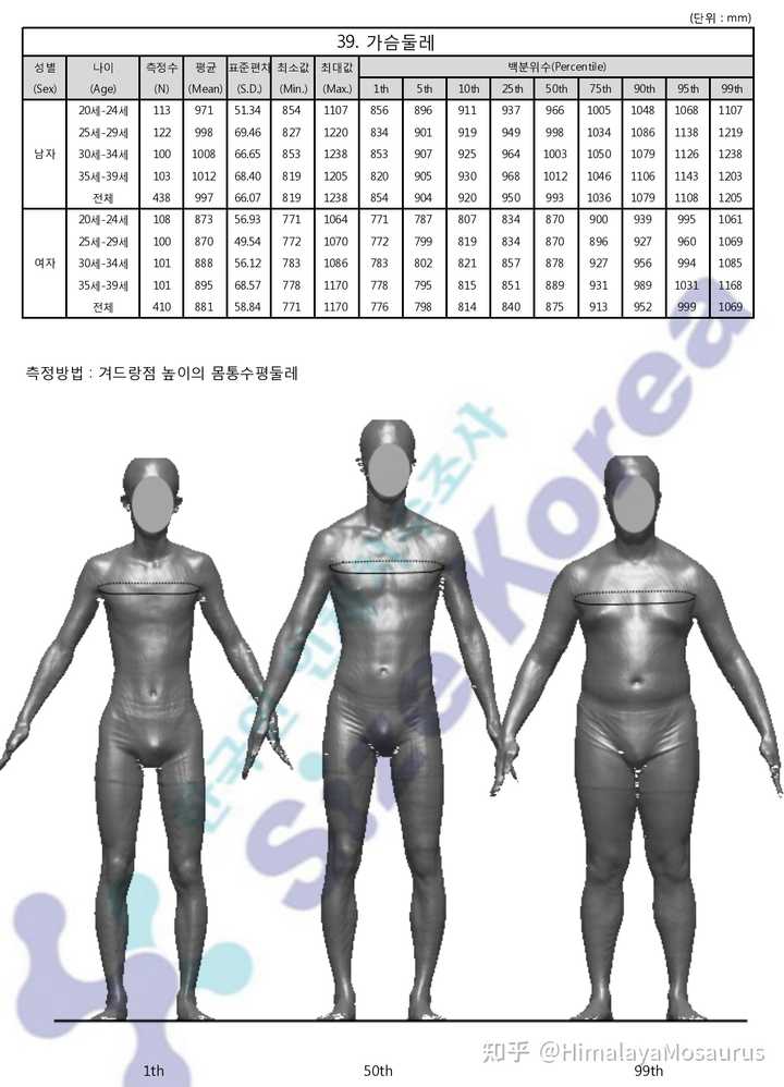根据Korea Size公布的人体三维扫描结果,韩国20~29岁女性平均胸围和中国差不多,略大一点点。