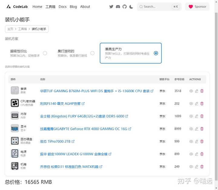 工具箱这块结合最近的需求,把我设计的几套装机方案放在网站上