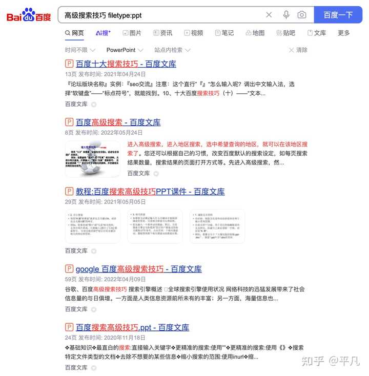 还有找课件也一样,不管你在关键词里加入多少“大学课件”,”研究生课件“这类型的词,都不如加一个「filetype:ppt」好使。